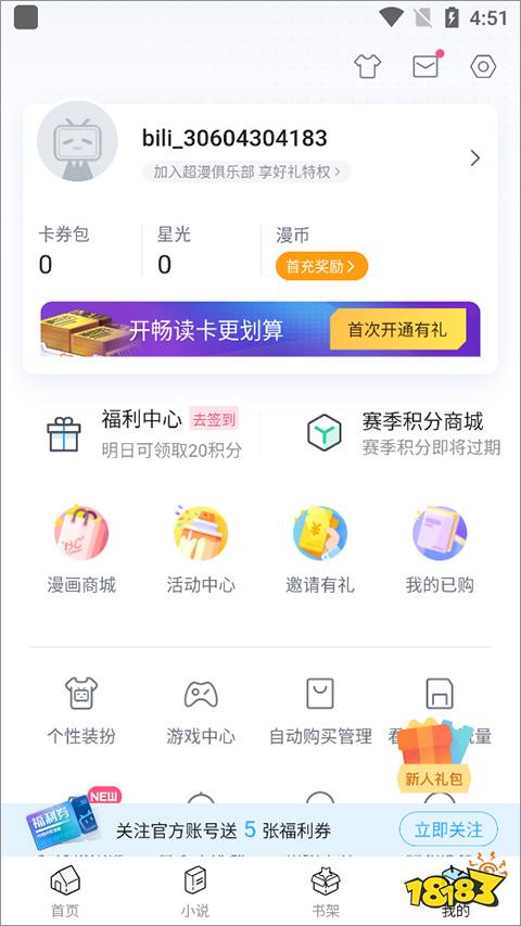 具體消費請在嗶哩嗶哩漫畫app中進入【我的】頁面中點擊頁面上部的【開通暢讀卡】進行查閱