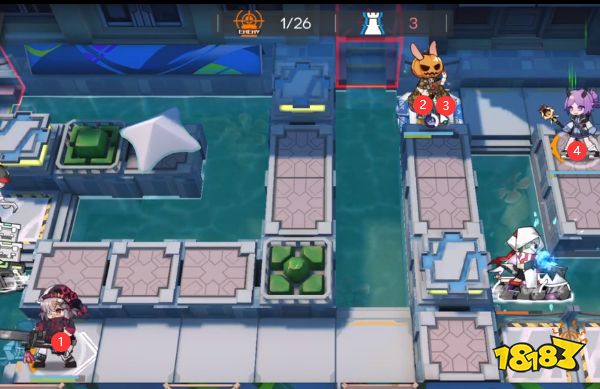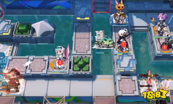 先下群攻近衛(向左)→ 2號位布置浮板 → 快狙(向下)→ 單奶(向左)