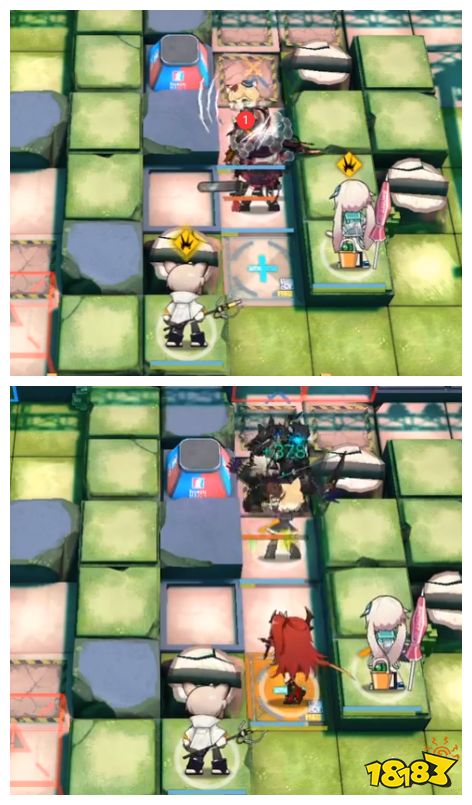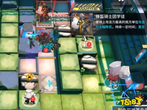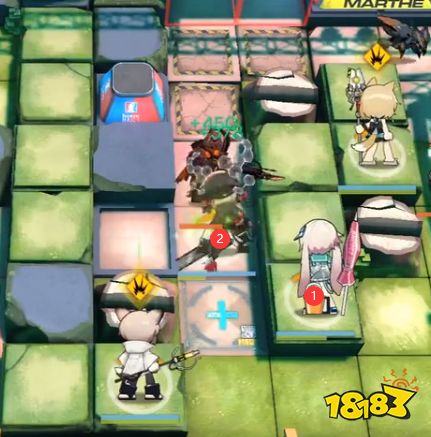 2.左上角單奶(向右),然后將防御格上的先鋒換成法衛準備打大盾。隨后右側部署史爾特爾,先鋒2號換遠衛。