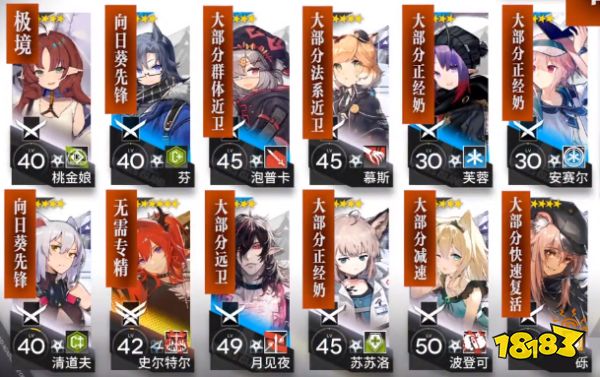 極境/桃金娘、常規先鋒*2、遠衛*1、群攻近衛*1、法衛*1、單奶*3、減速輔助*1、快速復活*1