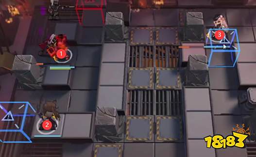 起手如下圖所示左上擺先鋒,然后2號位狙擊向上輸出,右邊下快速復活把柱子打殘后撤退。