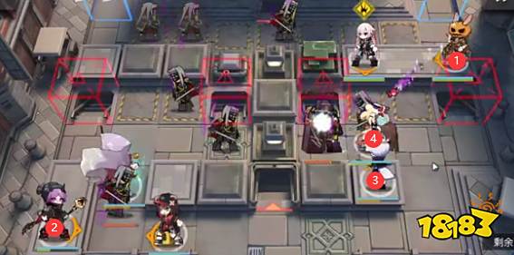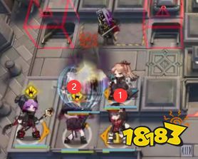 起手如下圖所示,左下擺先鋒x2,右上銀灰,費用到了之后馬上上單奶(向下)吸引仇恨防止銀灰暴斃。