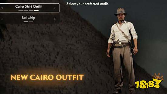 之前不少玩家吐槽,印第安納·瓊斯在吉薩沙漠穿那么厚的皮夾克太離譜,這次更新直接安排上“開羅無夾克”服裝,造型參考了電影《奪寶奇兵1》里的經典樣子,終于合理了。