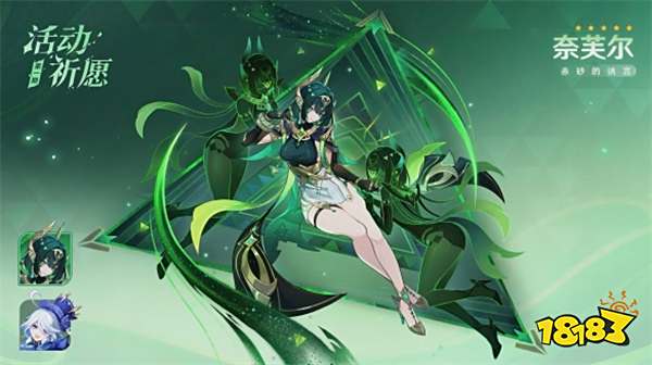 新版本第一期祈愿(10月22日開啟)將推出全新限定五星草系角色「湮沙的秘聞·奈芙爾」,她來自須彌,是「秘聞館」之主。奈芙爾能利用月綻放反應產生特殊草露,通過特殊重擊造成高額傷害,隊伍達成特定條件時,其技能傷害將進一步提升。同期復刻的五星角色為水系「不休獨舞·芙寧娜」。
