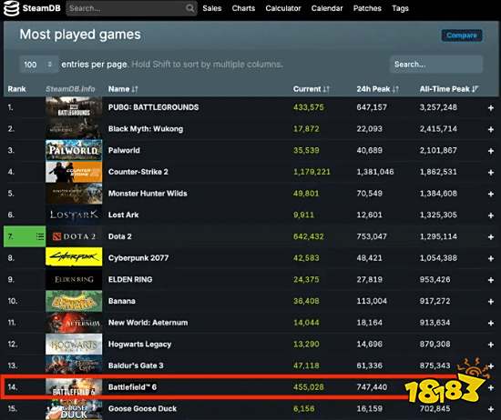 2025年10月10日晚11點,《戰地6》正式登陸PS5 Pro、XSX|S及PC平臺,發售僅一天便創下令人矚目的成績——Steam同時在線玩家數峰值達到747,440人,迅速躋身Steam有史以來最熱門游戲第14名。這一表現不僅超越了EA自家此前在開放測試階段創下的紀錄,也超過了《使命召喚》系列的歷史峰值,成為EA史上最成功的射擊游戲開局。