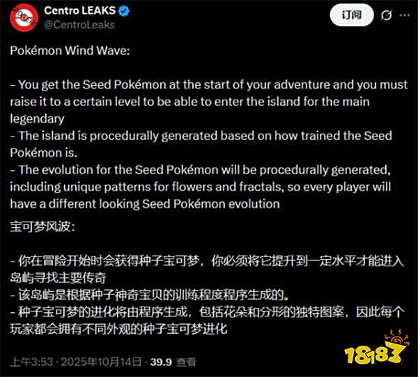 從《紅 / 綠》到《風 / 浪》,寶可夢系列用 30 年證明,創新才是永恒的 “第一屬性”。這次開放世界 + MMO+SDGs 的大膽嘗試,不只是玩法突破,更是對游戲社會價值的重新定義 —— 哪怕最終成品還有變數,Game Freak 敢跳出舒適圈的勇氣,已經值得玩家起立鼓掌。最后還是要提醒一句:以上內容均來自泄露,官方消息請等任天堂發布會,但在此之前,不妨先想想:如果你的種子寶可夢進化成 “會飛的彩虹獨角獸”,你會給它取什么名字呢?