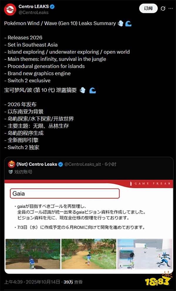 這次泄露還透露出 Game Freak 的 “大野心”:2026 年《風 / 浪》首發 Switch 2 后,2027 年要出 DLC 擴展地圖,到 2030 年甚至計劃實現神奧、豐緣等經典地區無縫連接的 “寶可夢大世界”,而且種子寶可夢系統會成為未來所有寶可夢游戲的核心機制,你的專屬伙伴說不定能跨代傳承。當然,官方目前還沒認可這些消息,只承認 2024 年曾發生服務器被攻擊事件,但想想《朱 / 紫》的開放世界試水,再看這次泄露里程序生成島嶼、動態天氣這些細節,這波 “餅” 大概率不是空穴來風。