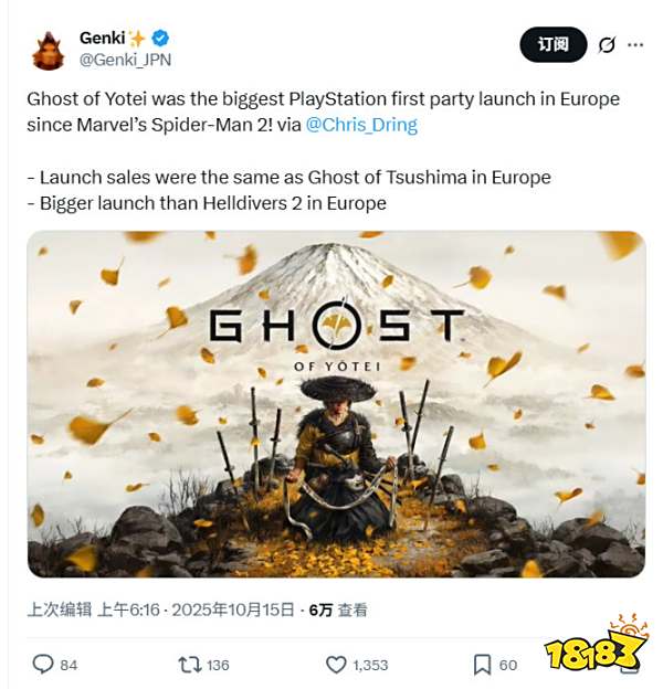 根據GSD截至10月5日的歐洲銷量統計數據,《羊蹄山之魂》在發售首周末表現強勁,成為自2023年《漫威蜘蛛俠2》以來索尼第一方游戲中銷量最佳的作品,其歐洲地區銷量與前作《對馬島之鬼》相當。
