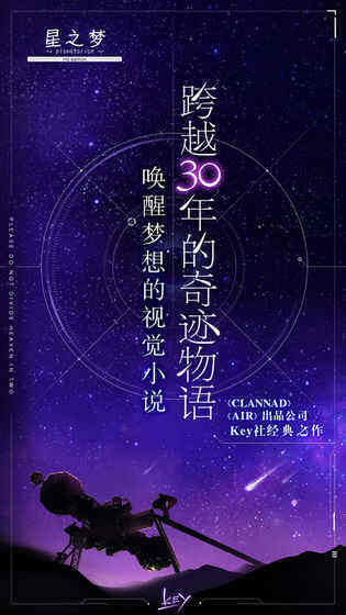 《星之夢》是一款由知名游戲社團Key社出品的戀愛冒險類手游,是視覺小說系列“Kinetic Novel”的第一部。游戲以未來世界為背景,講述了在世界大戰(zhàn)30年后,一位廢墟獵人在廢棄都市中遇到星象館招待機器人星野夢美的故事。