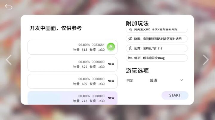 4.采用軌道判定機制,長按長條后手指可自由離開,不會導致Miss判定,增加了操作的自由度。