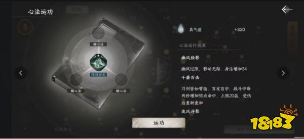 點擊頁面中心的“運功”,打開心法運功頁面,進行主心法和輔心法的配置,可獲得心法運行效果。