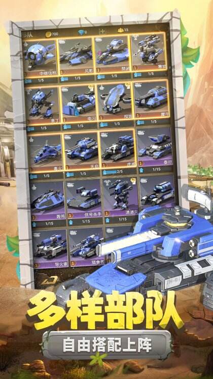 1. 玩家可自由組合多兵種與載具,搭配出獨(dú)特的戰(zhàn)斗陣容。