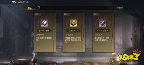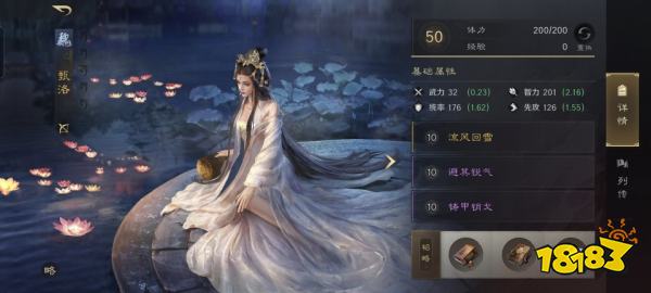 秉持著女士優(yōu)先的紳士風(fēng)度和拋磚引玉的寫作思路,讓甄洛率先出來亮相。流風(fēng)回雪無論隨機到郭嘉還是程昱,都能讓他們其中一人獲得洛神Buff,從而觸發(fā)奇謀攻擊。之后似乎沒什么心機,疊加的兩個紫色戰(zhàn)法分別是避其銳氣和鑄甲銷戈,就是要強化防御。然而值得注意的是,韜略之中的洛神賦下卷,明顯是把施展奇謀的機會優(yōu)先分配給程昱,畢竟勇冠賁育的程昱,在武藝方面確實要比郭嘉高出不少。