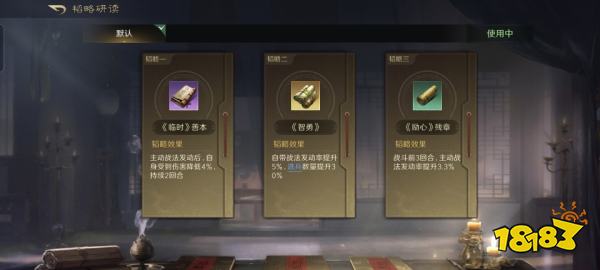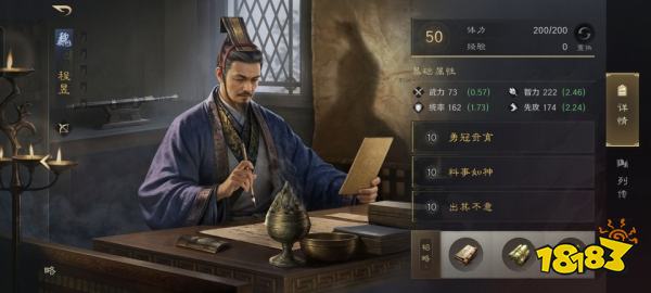 相比之下,真正的重頭戲還是在程昱的身上。通過洛神帶來的奇謀和郭嘉算無遺策的6%,程昱默認戰(zhàn)法勇冠賁育的發(fā)動率將高達66%,無論是直接造成的傷害還是繼而引發(fā)的逃兵,都會更加水漲船高。第二戰(zhàn)法和第三戰(zhàn)法依次是料事如神和出其不意,力爭把打擊范圍覆蓋到對面三人,還要牢牢套上技窮。最后憑借智勇韜略把勇冠賁育的發(fā)動率加到了71%,逃兵數(shù)量還提升了30%。