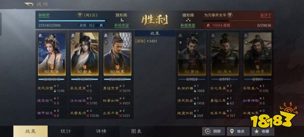 箕形陣的結(jié)構(gòu),是把甄洛給推到前排的,如此不懂憐香惜玉的布陣,以甄洛獨自承受風(fēng)險為代價,換來了郭嘉和程昱二人再度獲得12%的傷害量提升。盡管有失男子氣概,卻呈現(xiàn)了魏弓碾壓魏盾的名場面。曹操、典韋、徐晃這支隊伍要么一支被電,要么一支出逃兵,根本無力組織起有效的反擊。即便曹操一人拼命擠奶,最終還是無力回天了!綜合來看,這個思路非常不錯,正面無法通過物理傷害打穿,那就用電擊和逃兵來解決對手!