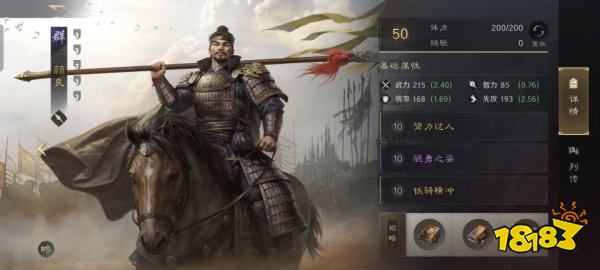壓軸登場的顏良,承載了全隊的核心輸出重任!他在三國謀定天下的默認戰(zhàn)法膂力過人,是個100%發(fā)動率的追擊戰(zhàn)法,對于武力值比他低的角色而言,這追傷可算是又穩(wěn)又狠。顏良的第二和第三戰(zhàn)法,分別學習了驍勇之姿和鐵騎橫沖,把連擊和會心也都安排得明明白白。小金書武上、武鋒和玄機的善本,讓我們可以明確感知到,他們這個組合就是要鉚足勁在前四回合解決對手!