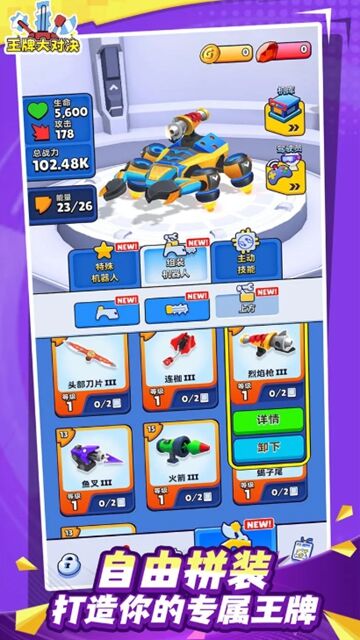 1. 進入游戲后先完成新手教程,熟悉機甲拼裝、對戰操作及基礎規則,快速上手游戲。