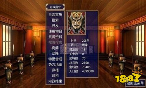 發展趨向:如果你真想玩,也不難發展,最好一開頭就攻下劉備,并百分百俘虜了。統一國家就沒問題了。多發展張合,適當發展顏良、文丑。