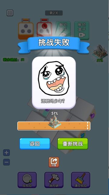 《最強螺絲王》的解壓效果顯著,螺絲順利擰下的音效和視覺反饋,能有效緩解日常壓力,讓玩家在游戲中放松。同時具備即時反饋機制,每擰下一個螺絲都有即時得分提示和進度顯示,讓玩家清晰了解關卡完成情況,增強成就感。另外支持微信社交聯動,玩家可將關卡成績分享到微信好友或群聊,與好友比拼拆解速度,增加互動性和趣味性。