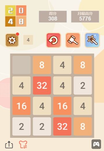 3. 避免過(guò)早填滿屏幕,當(dāng)屏幕內(nèi)方塊數(shù)量較多時(shí),優(yōu)先合并中間或邊緣的小數(shù)值方塊,為新生成的方塊預(yù)留空間,防止因空間不足提前結(jié)束游戲。